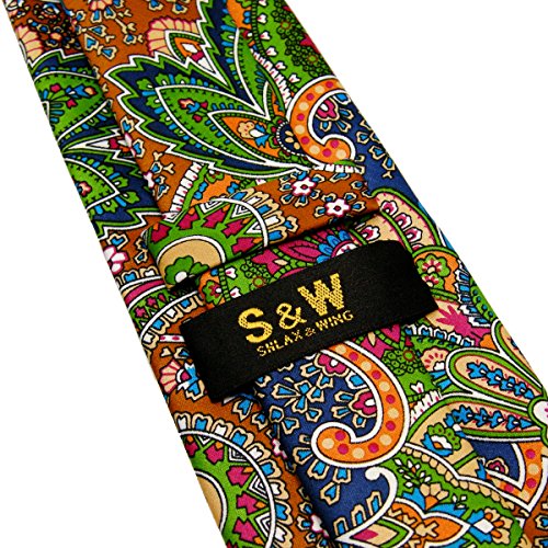 Shlax&Wing Extra lungo Cravatta da uomo Paisley Multicolore Rosso Verde Giallo Seta 160cm