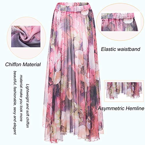 Shmily Girl Donne Casuali Gonna Lunga Abito Spiaggia Cocktail Gonna Maxi Chiffon Orlo Grande (Medium, Viola/Floreale)