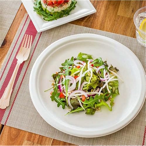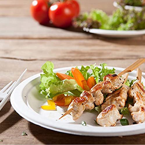 SHOBI Piatto Piano Tondo in polpa di Cellulosa interamente Biodegradabile e Compostabile Usa e Getta (50, Ø 18 Cm)
