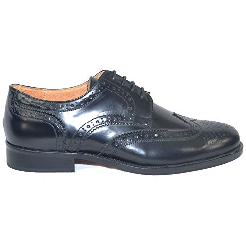 Malu Shoes Calzature Uomo Cerimonia Francesina Inglese Stringata Abrasivato Nero Fondo Cuoio Antiscivolo Vera Pelle Made in Italy (43 EU)