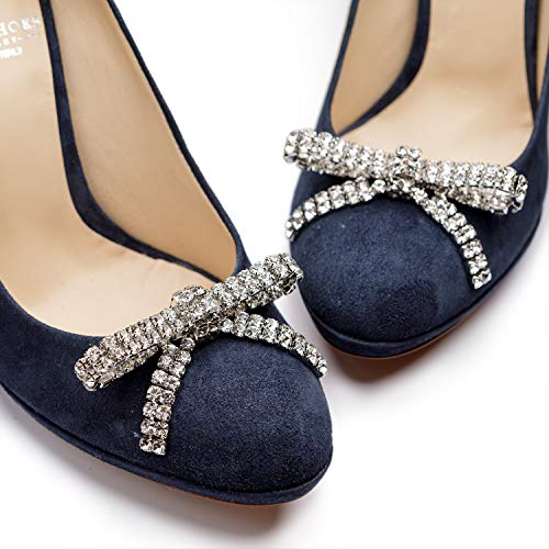 LOVE SHOES - 2 spille a clip per scarpe da donna, in argento, con fiocco di strass, elegante spilla per scarpe, One Night in Vegas