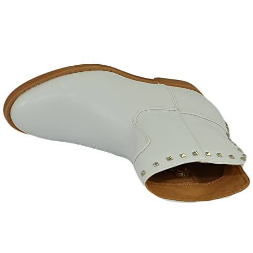 Malu Shoes Stivaletto donna bianco zeppa para interna modello biker punta tonda alla caviglia con scollo v zip e borchie comodo (39 EU)