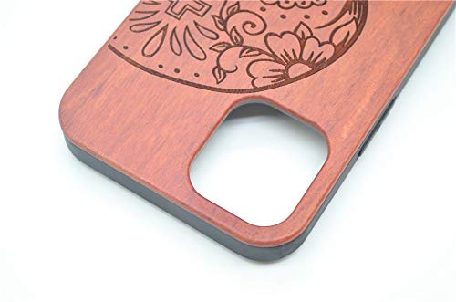Shogpon Cassa di Legno per iPhone 12 / iPhone 12 PRO, Cover Custodia con Motivo Intagliato in TPU Hard Case in Legno Naturale Design Antiurto Antiscivolo - Cranio Palissandro