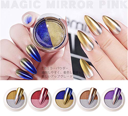 Shogpon Unghie Glitter Super Brillante Specchio Cromo Effetto Unghie Polvere Decorazione di Arte del Chiodo Manicure Pigmento di Polvere (Polvere Bicolore), Rosso e Rosa