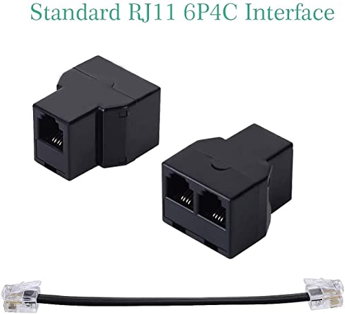 SHONCO - Adattatore per cavo telefonico, 2 pezzi, colore: nero, adattatore telefonico, con splitter RJ11 6P4C, adatto per telefono, fax, confezione da 2
