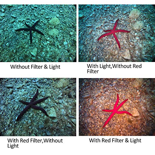 【Filtro Rosso Interno】Il filtro ROSSO è ideale per l'acqua salata blu tropicale o acqua limpida e fresca. Filtra l'eccesso di blu e aumenta il rosso e il giallo.