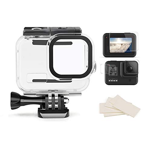【Pack List】 1 x Custodia impermeabile per GoPro Hero 8 Black, 1 x Pellicola temperata per GoPro Hero 8 Black, 12 x Inserto anti-appannamento