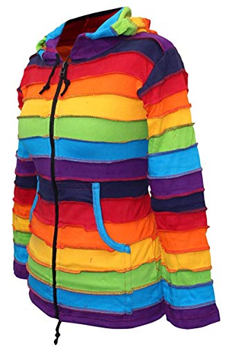 SHOPOHOLIC FASHION Colorata-Giacca con Cappuccio a Righe Arcobaleno Hippie Multicolore 42