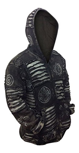 Zip, maniche lunghe due tasche laterali, lunghezza anca e un cappuccio dimensione buona.