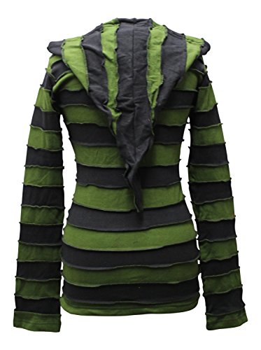 SHOPOHOLIC FASHION Giacca Outwear con Cappuccio Pixie a Righe Patchwork da Donna, Verde, XL