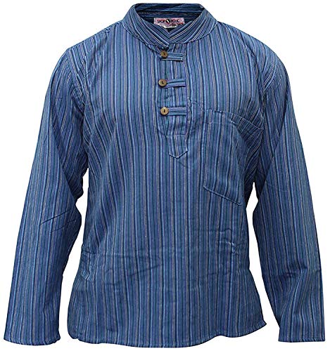 SHOPOHOLIC FASHION Multi Colore Mix dharke Strisce Leggero Comodo Maniche Lunghe Tradizionale Nonno Camicia, Hippy Boho, Blu, 3XL