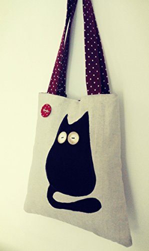 Shopper in Canvas con applicazione gatto nero