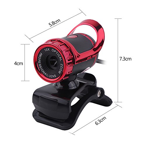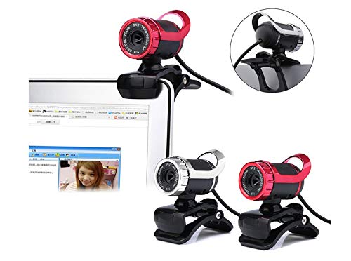 Shopping Pazzo Webcam Clip-on, Pixel USB 2.0 12M, videocamera Web HD 360 ° con Supporto Rotante Microfono Incorporato per PC(Red)