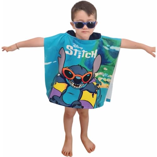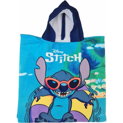 ILS I LOVE SHOPPING Poncho con cappuccio Asciugamano da spiaggia Mare e piscina Accappatoio in microfibra 55X90 cm asciugatura rapida, ultra morbido (STITCH)