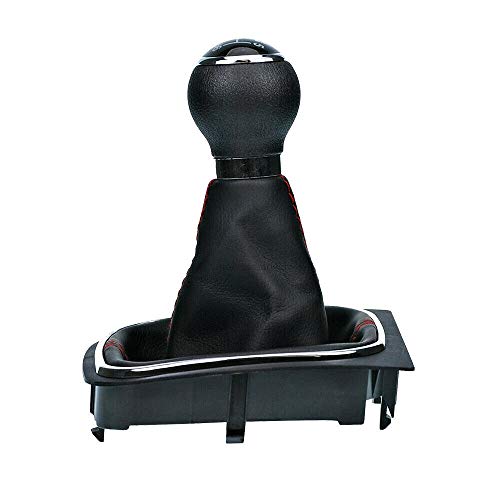 Shoppy Lab Compatibile Con Set Completo Pomello Leva Cambio Manuale 6 Marce + Cuffia Similpelle Cuciture Rosse + Telaio Ricambio Per Auto Volkswagen Nero Rifiniture Pomello Chrome Abs Plug & Play