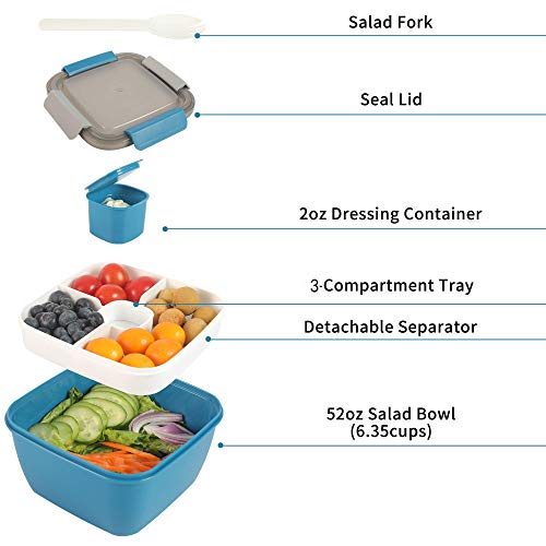 Mantieni il cibo separatamente - Non preoccuparti del cibo in un casino quando lo porti al lavoro. Il vassoio rimovibile contiene 3 o più condimenti e/o snack separatamente. Il contenitore per salsa da 56,7 g mantiene la medicazione senza disordine durante il trasporto