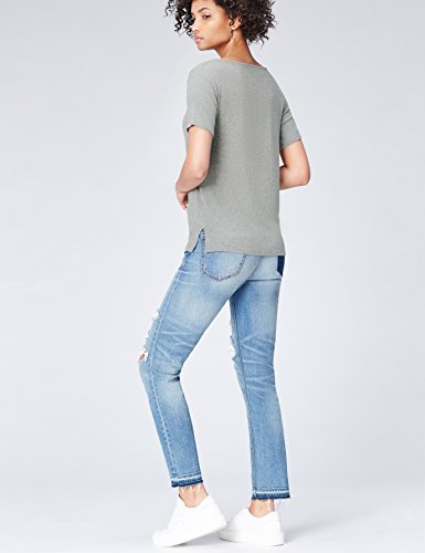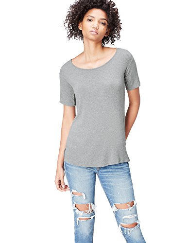 Find. Short Sleeve Rib, T-Shirt Donna, Grigio (Grau), Small