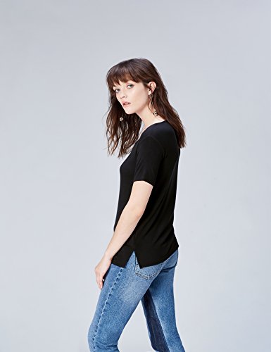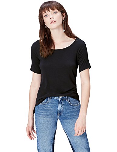 Find. Short Sleeve Rib, T-Shirt Donna, Nero (Schwarz), Medium