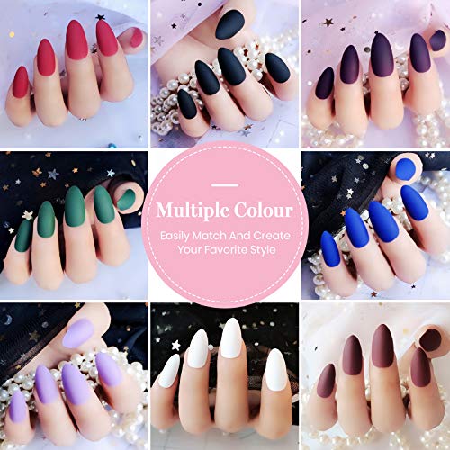 720 Pz Short Stiletto Press on Nails, Kalolary Matte Almond Artificial Full Cover Unghie finte Solido Pure Color Acrilico Unghie finte Art Tips Set con Lima per unghie Bastoncini per unghie