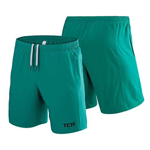 TCA Shorts da Uomo Natural Performance Bamboo Gym/da Corsa con Tasche - Verde (Vecchio), L