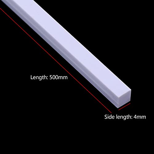 SHOUCAN 5 Pezzi ABS Barra Quadrata Solida Barra di Plastica Bianca Adatta per Modello Architettonico, Lunghezza 500 mm Lunghezza Laterale 1-4 mm,4×4×500mm (5pcs)