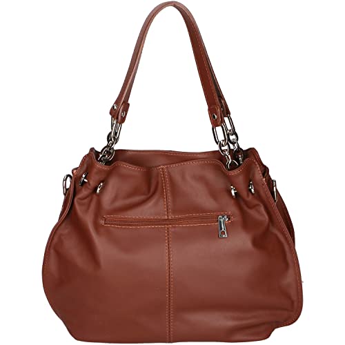 Aren - Shoulder Bag Borsa a Spalla da Donna in Vera Pelle Made in italy - 38x30x12 Cm (Bruciato)