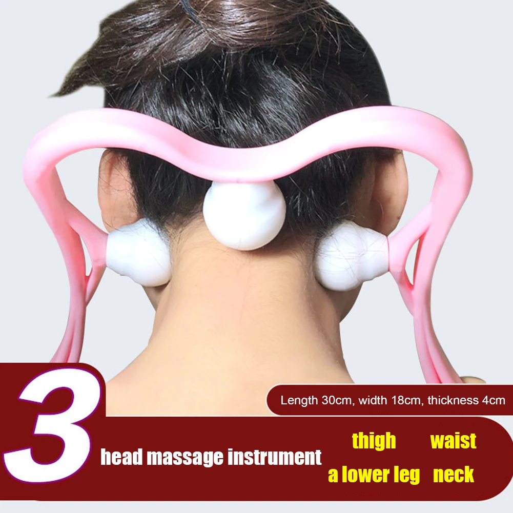 Neck Shoulder Massager Handheld 3-Balls Roller Cervical Pressure Reliever Neck Roller Shoulder Massage Pain Relief Tools