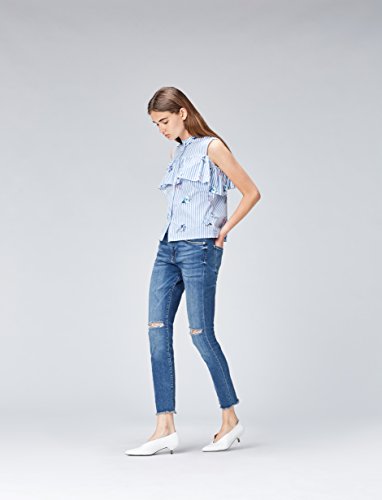 Find. Cold Shoulder Ruffle, Camicia Donna, Blu (Blue Stripe Floral), 12 (Taglia Produttore: Medium)