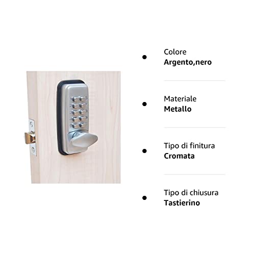 ShouSiFang Serratura per porta con codice digitale, cromata, resistente alle intemperie, con combinazione di tasti codificati, colore nero o argento (argento)