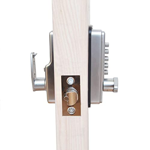 - Facile da installare, dopo i fori realizzati sulla porta secondo il modello allegato.NOTA: assicurarsi che tutte le parti funzionino correttamente prima dell'installazione. Non stringere eccessivamente i bulloni di fissaggio, poiché ciò potrebbe causare distorsioni e carico a un funzionamento scadente.Non chiudere la porta prima che il codice e il lavoro di blocco siano confermati correttamente