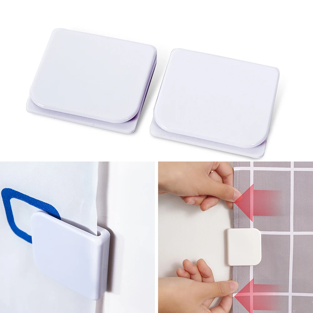 2Pcs Shower Curtain Fixing Clips Water-Splashing Resistant Self Adhesive Practical Seamless High-Quality Bathroom Curtain Clips