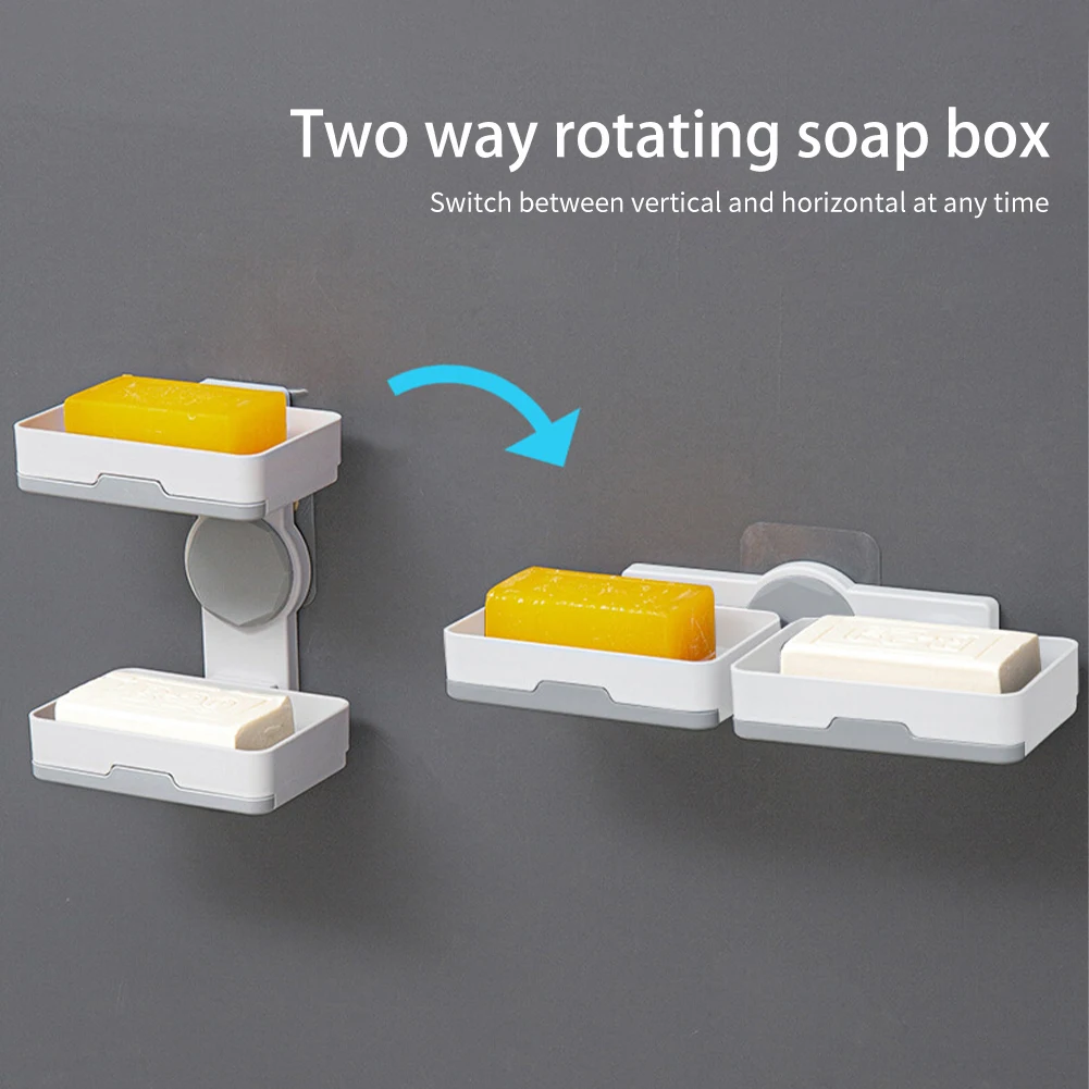 Shower Drain Holder Powerful Modern Simple Bathroom Soap Dish Countertop Punch Free Kitchen Double Layer Rotatable Storage