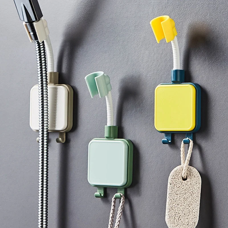 360° Shower Head Holder Universal Adjustable Self-Adhesive Showerhead Bracket Wall Mount With 2 Hooks Stand Bathroom Accessories