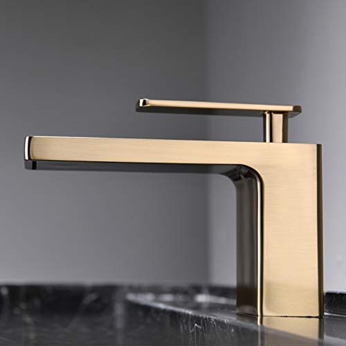 Shower Set Rubinetto Bagno Lavabo Oro Spazzolato Singola Maniglia Monoforo Miscelatore Lavabo Ottone Corto Rubinetto Lavabo con Acqua Calda e Fredda per Bagno o Lavabo Bagno