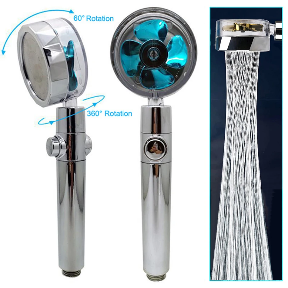 New Shower Head Water Saving Flow 360 Degrees Rotating With Small Fan ABS Rain High Pressure Spray Nozzle Bathroom Accessories