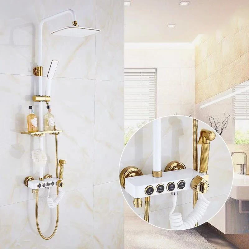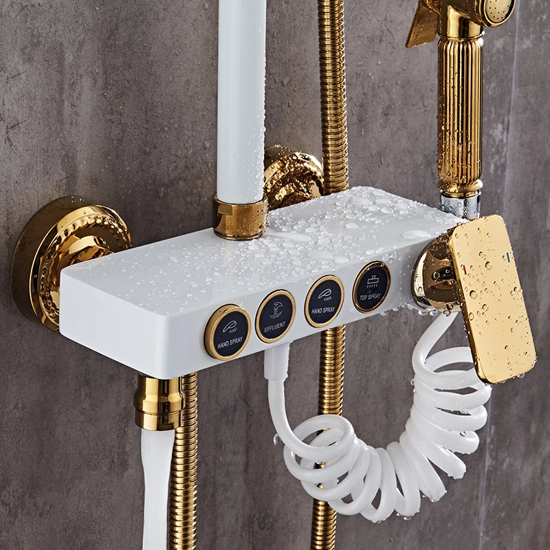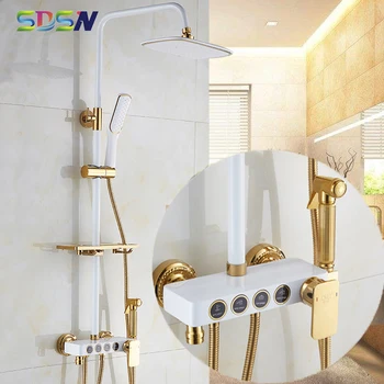 Bath Shower Set White Gold Shower System Quality Brass Bathtub Faucet Copper Gold Bath Bidet Rainfall Bathroom Shower Mixer Set