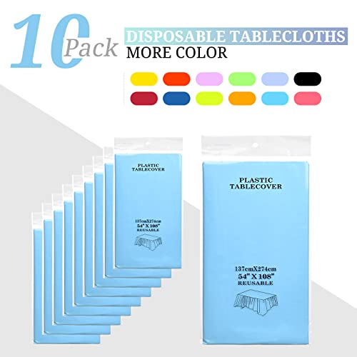 Showgeous Confezione da 10 tovaglie rettangolari in plastica usa e getta 137 x 274cm, tovaglie rettangolari in plastica, feste al coperto o all'aperto, compleanni, matrimoni, buffet (azzurro)