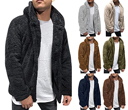 Shownicer Cappotti Giacca Uomo Peluche Calda Felpa con Cappuccio di Capispalla Cardigan Invernale Casuale Taglie Forti Sportiva Outwear Jacket Hoodie Nero XS