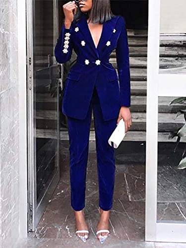 Shownicer Donna Tailleur Pantalone Maniche Lunghe Cappotto Tuta Blazer Top 2 Pezzi Slim Fit Giacca e Pantaloni Z Blu XL