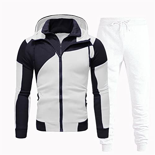 Shownicer Tuta Uomo a Maniche Lunghe con Cappuccio Tinta Unita Tuta Uomo Invernale Sportiva Casual per Palestra Jogging E Bianco L