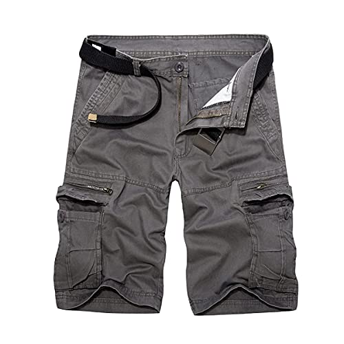 Shownicer Uomo Pantaloni Corti Bermuda Cargo Pantaloncini Lavoro Pantaloni Tasconi con Elastico Pantofole Estive Casual Pantaloncino Sportivi B Grigio Scuro L