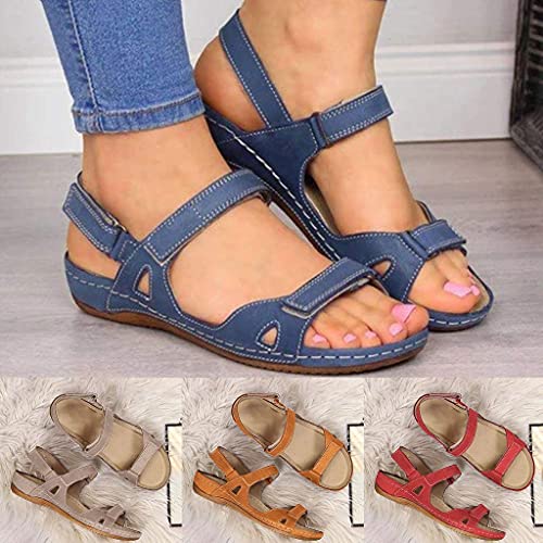 Shownicer Sandali Donna Premium Ortopedico Sandali Estivi Comode Cuoio Sandali con Zeppa Vintage Sportivi Sandali Scarpe da Spiaggia Grigio 42 EU
