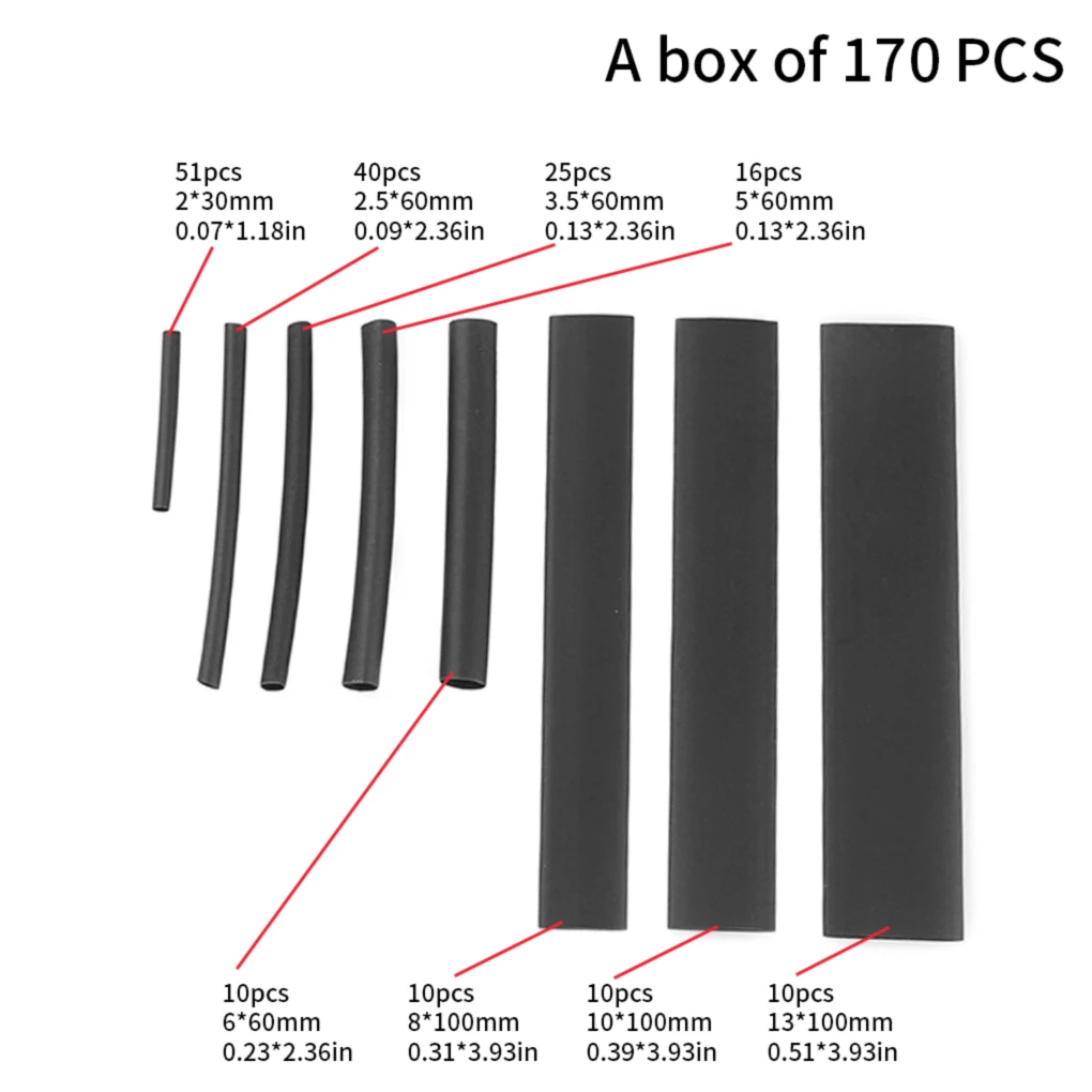 Heat Shrink Tube 170Pcs Heat Shrink Tubing Set PE Insulation Cable Tube Waterproof Shrinkable Sleeving Wire Wrap Cable Tube