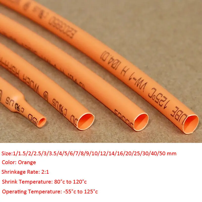 Heat Shrink 2:1 Heatshrink Tube Cable Wire Electrical Sleeving Orange 1 - 50 mm