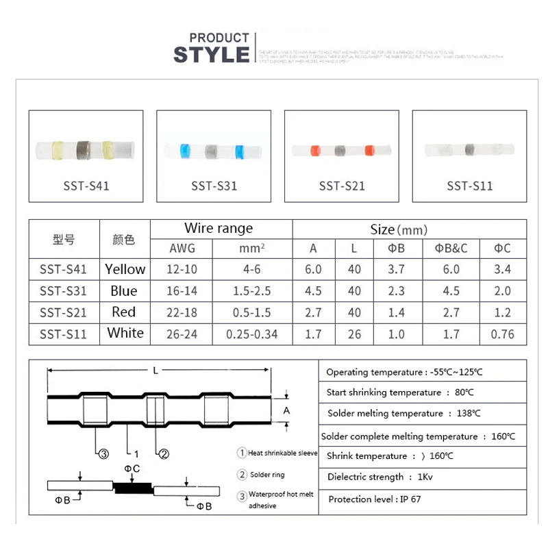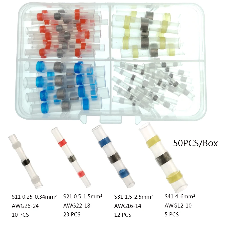 Heat shrinkable waterproof wire connector set 0.25-6.0mm2 AWG26-6 casing welding quick docking terminal boxed Solder tube set