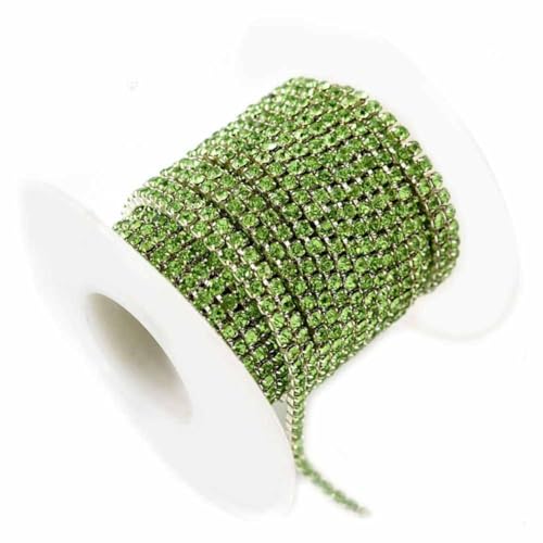 SHTGOI 5 Yards/rotolo di strass con una fila di cristalli da 2 mm, parte inferiore in argento, catena di strass, al metro, decorazione per fai da te, vestiti, matrimoni, feste, verde chiaro