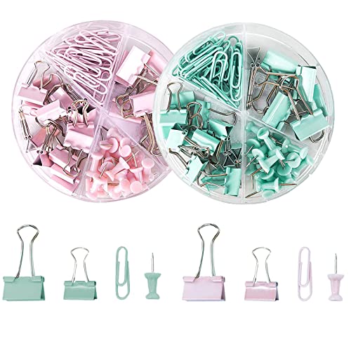 SHUANGJUN Set di Clip per Raccoglitori, Set di Cancelleria da Ufficio, Compreso Clip per Raccoglitori, Graffette, Puntine da Disegno Forniture per Ufficio Clip, per Scuola e Casa (2 Scatole)