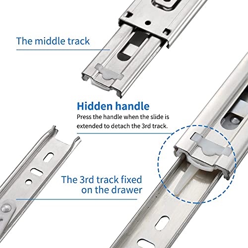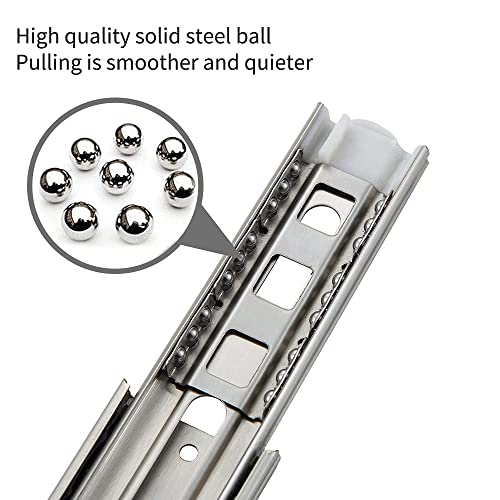 lunga Che è durevole e la normale della guida di scorrimento supera i 30 anni. Realizzato in metallo da 1 mm, acciaio inossidabile di alta qualità. Design di montaggio laterale. Capacità di carico: 45 kg. Descrizione delle dimensioni di installazione: 25 mm di spazio tra cassetto e parete dell'armadio richiesto (sinistra 12,5 mm, destra 12,5 mm).