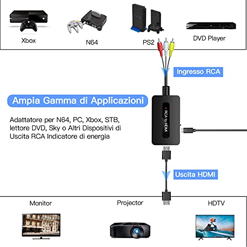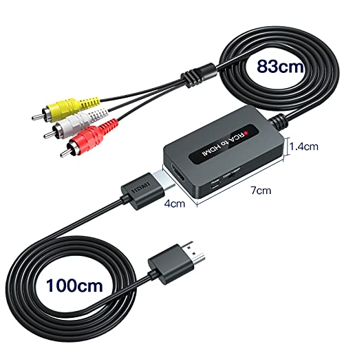 SHUITING Convertitore da RCA a HDMI con cavi HDMI, Convertitore da Composito a HDMI, 1080P Convertitore da AV CVBS a HDMI Video Audio Adattatore