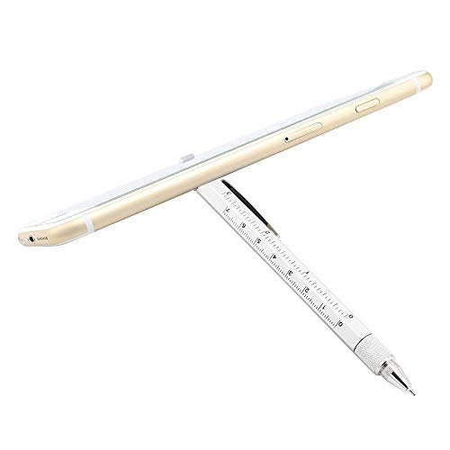 Shulaner 7 in 1 multifunzione strumento di metallo penna con righello, penna, Apribottiglie, supporto per telefono, Stylus e 2 cacciavite, Utensile multifunzione Pen Fit per uomo, padre regalo argento